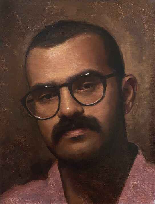Bharat Rajagopal is a contemporary representational artist focused primarily on portraits, figures and still-life paintings. Bharat did his undergraduate study at Falmouth University in England, where he was selected for the Midas Exhibition based on the strength of his degree work. His triptych paintings were exhibited at the Newlyn Gallery, Cornwall in 2017. In 2019 he moved to Florence, Italy to be classically trained in drawing and painting at the Angel Academy of Art. Here he studied under artists Michael John Angel and Jared Woznicki and was exposed to the traditional methods of the Old Masters which had a strong influence on his work.